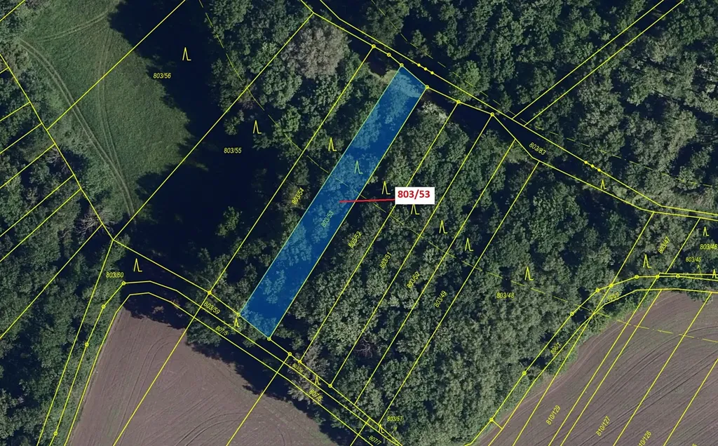 Lesní pozemky o výměře 1135 m2, parcelní číslo 803/53, podíl 1/1, katastrální území Přísnotice, obec Přísnotice, obec s rozšířenou působností Židlochovice, okres Brno-venkov, Jihomoravský kraj.