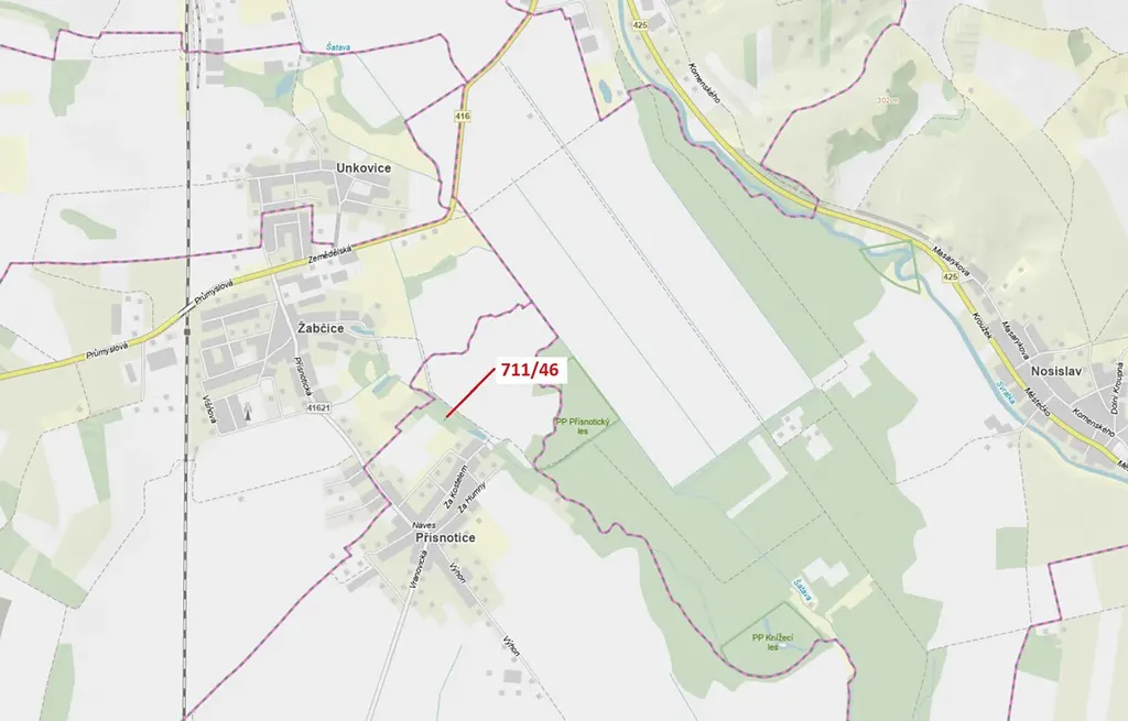 Lesní pozemek o výměře 569 m2, parcelní číslo 711/46, podíl 1/1, katastrální území Přísnotice, obec Přísnotice, obec s rozšířenou působností Židlochovice, okres Brno-venkov, Jihomoravský kraj.