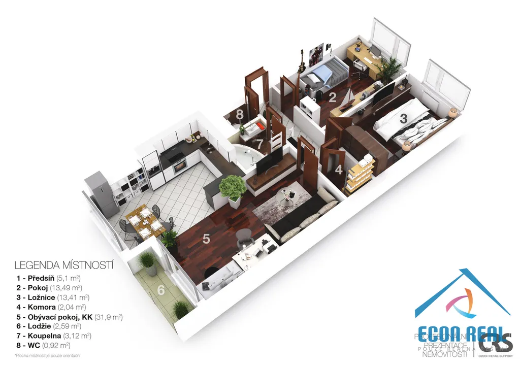 + měsíční zálohy na služby cca 5.600,- Kč + elektrika cca 1.400,- Kč.