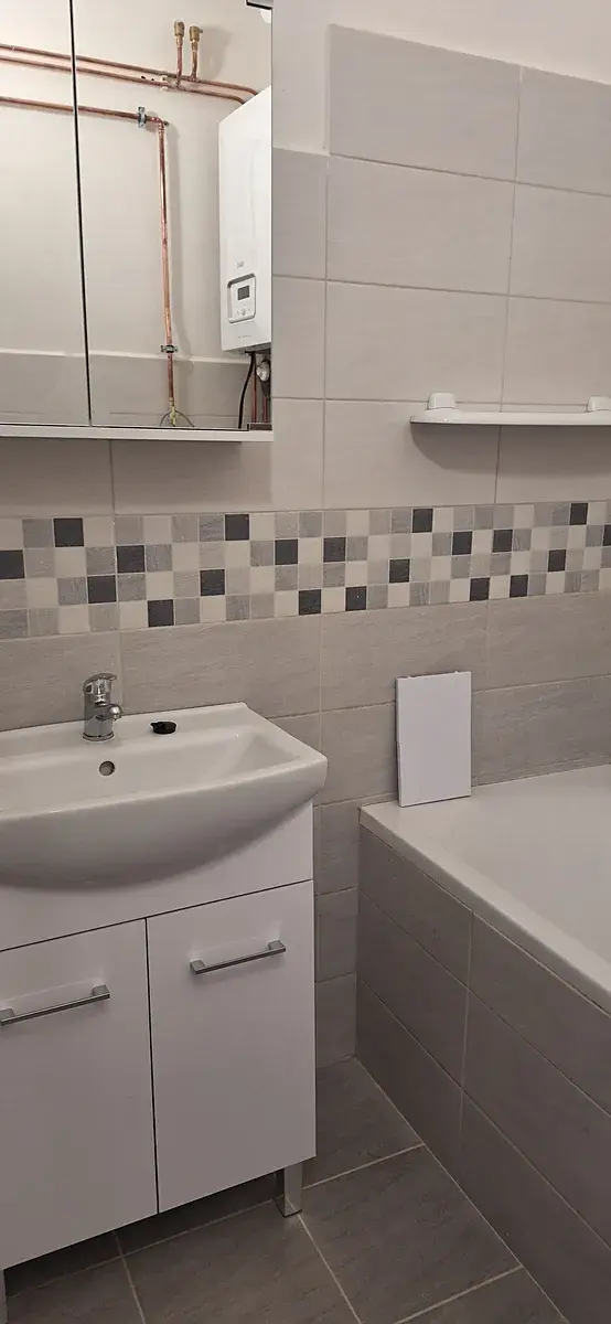 Byt má prostornou kuchyň 22 m2 s novou kuchyňskou linkou včetně všech spotřebičů. Pokoje 22 a 12 m2 mají sólo vstupy. Koupelna s vanou, umývadlem a pračkou. Nový kotel na vytápění a ohřev vody.
