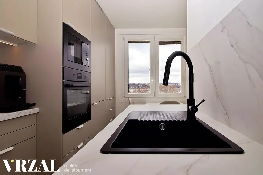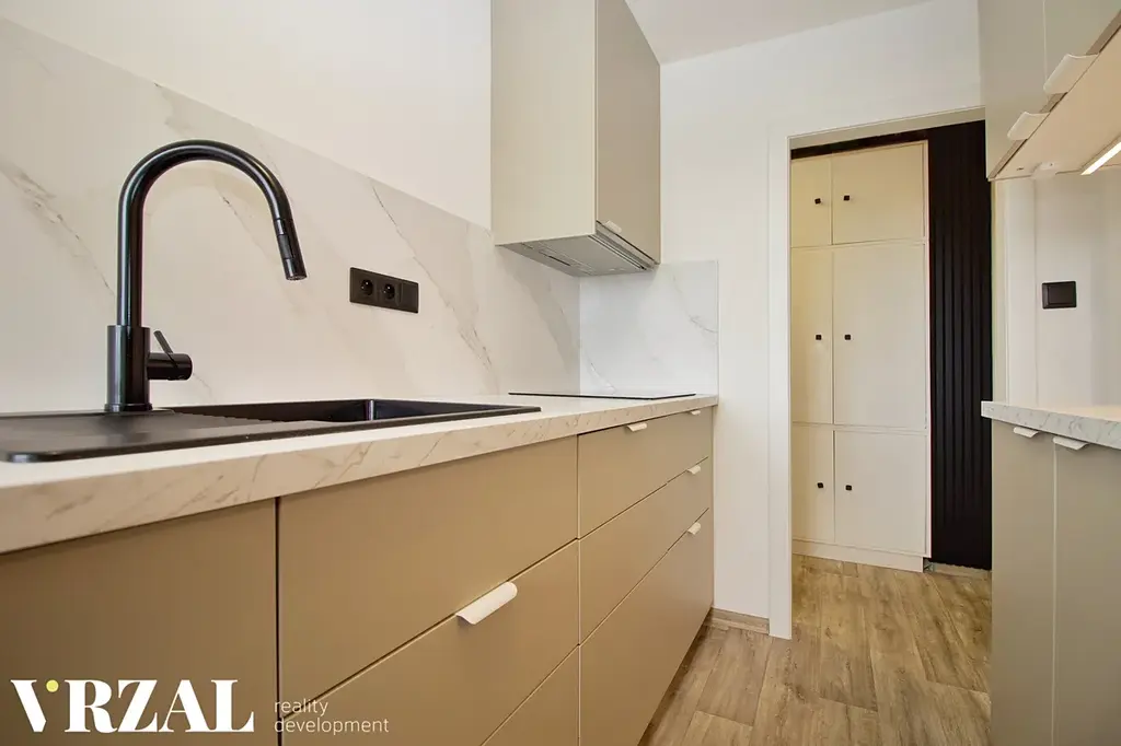 Tento byt o velikosti 76 m² prošel nákladnou rekonstrukcí v letech 2024-2025, při níž byly použity kvalitní materiály a moderní interiérové prvky.