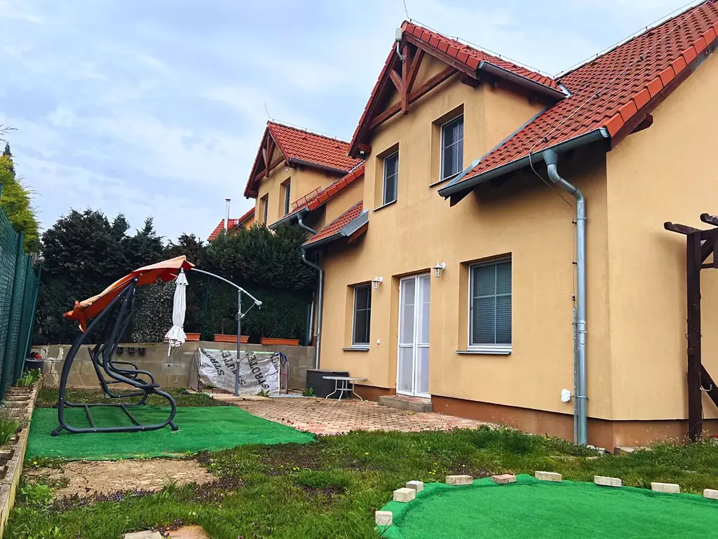 Nabízíme k pronájmu rodinný dům o dispozici 4+kk a podlahové ploše 102 m2 na pozemku o velikosti 250 m2 v obci Vinařice u Kladna.