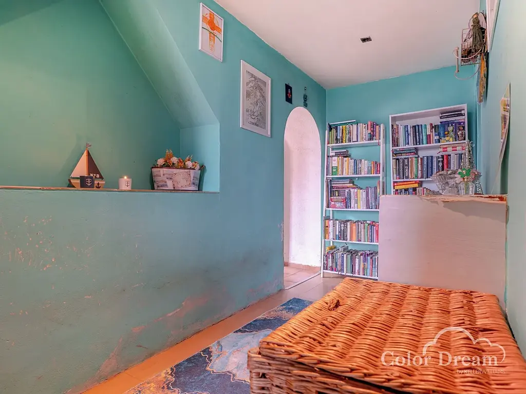 Za domem se nachází příjemná zahrádka/dvůr o výměře cca 147 m². Prostor je rozdělen na rovnou plochu a dvě klidná zákoutí, která poskytují dostatek soukromí díky zástavbě a zdem po dvou stranách. Ideální místo pro posezení, pěstování nebo relaxaci.