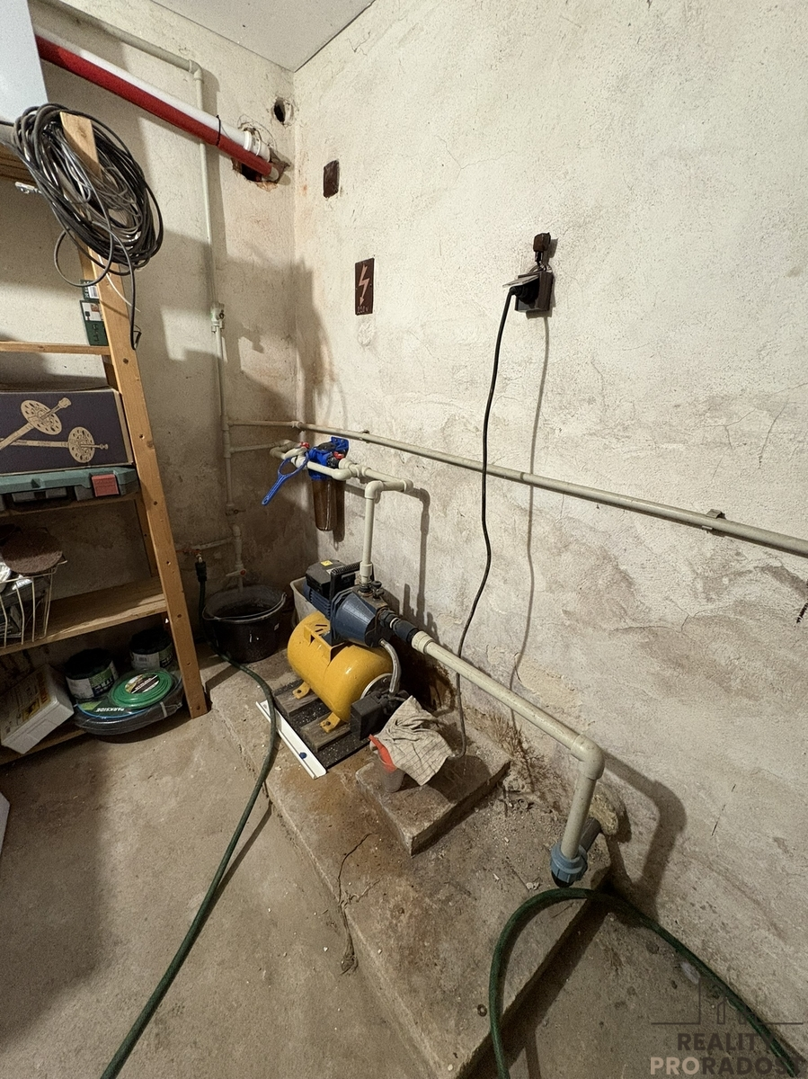 Voda je z vlastní studny s domácí vodárnou a filtrací, odpad je řešen pomocí trativodu a žumpy.