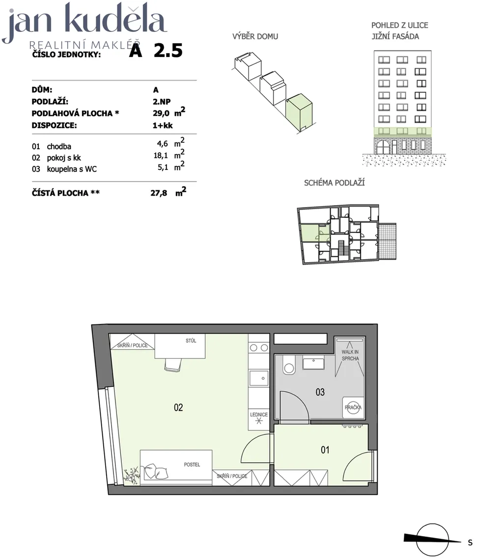 Nabízíme k pronájmu slunný byt 1+kk v moderní nízkoenergetické novostavbě o užitné ploše 27,6 m2. Byt je orientovaný do ulice a díky velkým oknům nabízí dostatek denního světla po celý den.