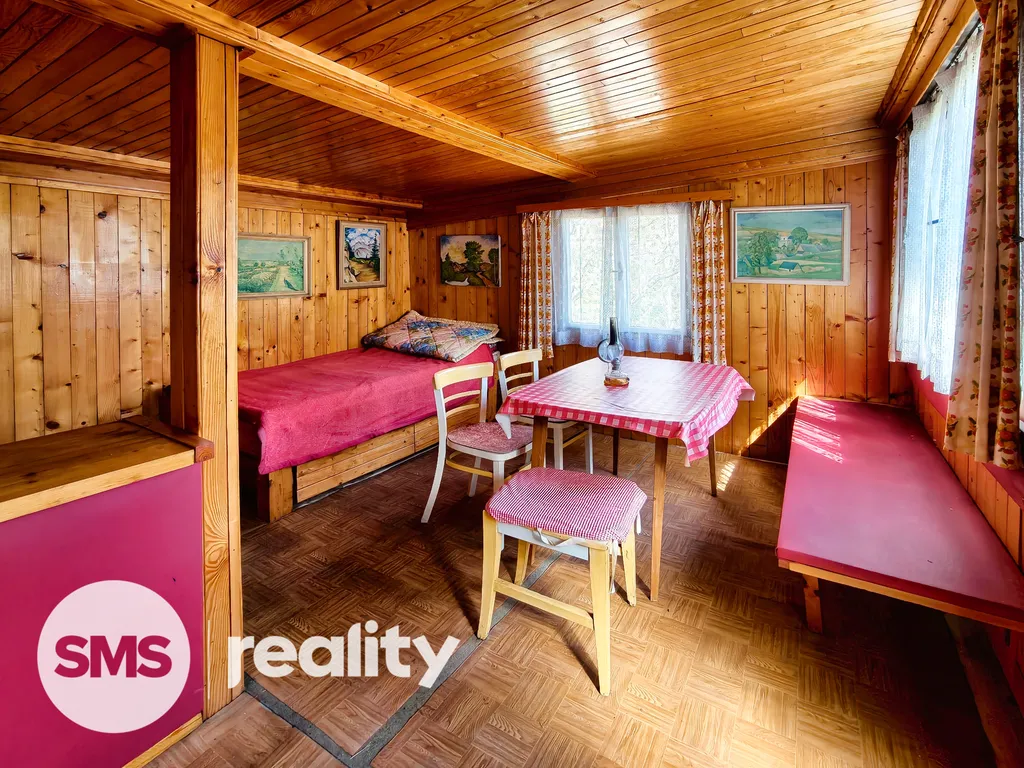 Součástí prodeje je chata se zastavěnou plochou 16 m², která poskytuje zázemí pro rekreaci i uskladnění potřebného vybavení.