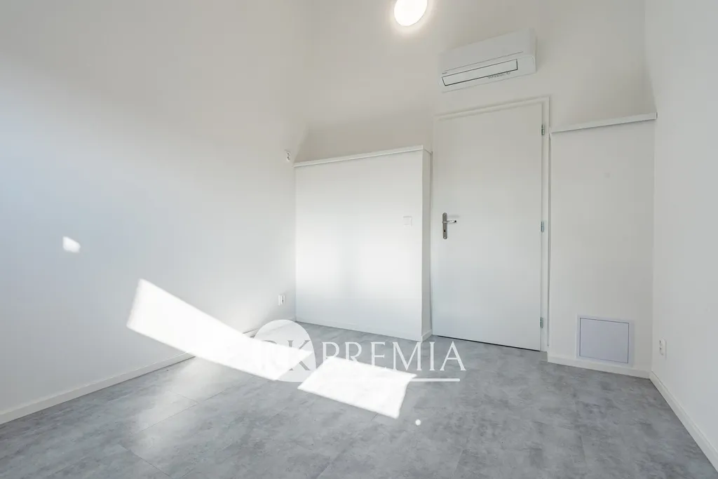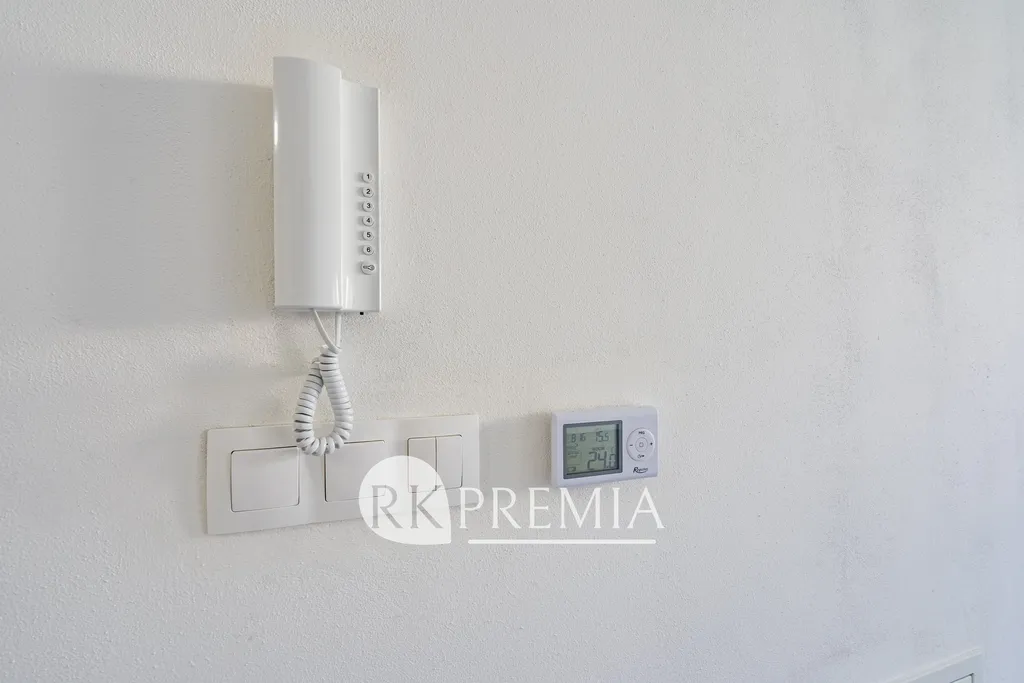 Byt je vytápěn tepelným čerpadlem v kombinaci s podlahovým topením, v každé z obytných místností je klimatizační jednotka a zabezpečovací zařízení s pohybovými čidly.