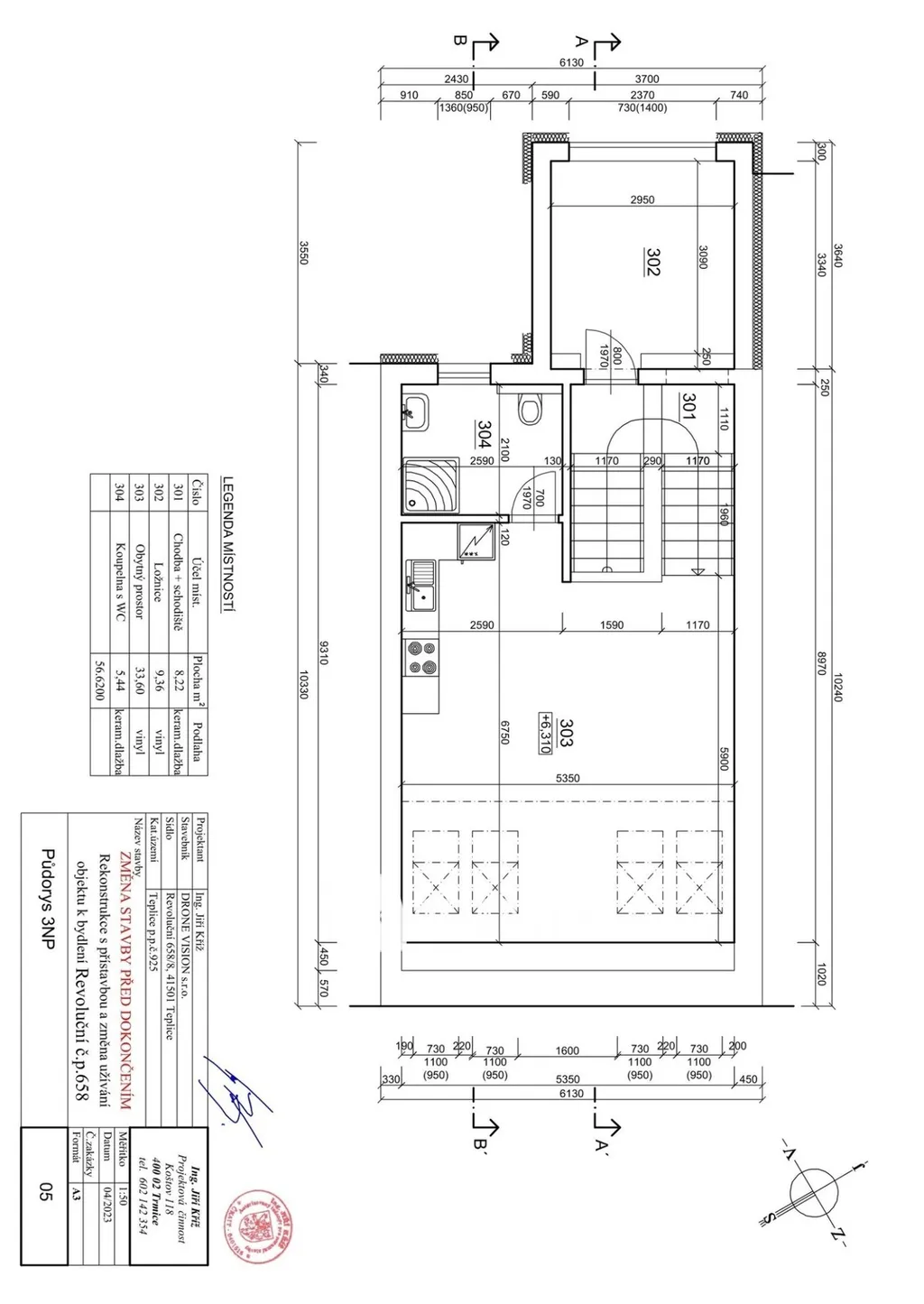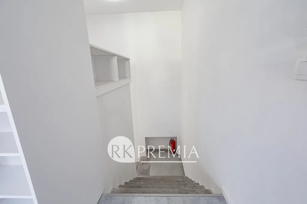 Byt najdete ve 3. NP domu bez výtahu, a jak jsem zmiňoval – je mezonetový, tedy ložnice je umístěna v mezipatře. Vstupní dveře bytu jsou ve 2. NP, kde na stejném patře sousedí kosmetický salón a v přízemí má provozovnu kadeřník. Tento byt je tedy jediný v domě.