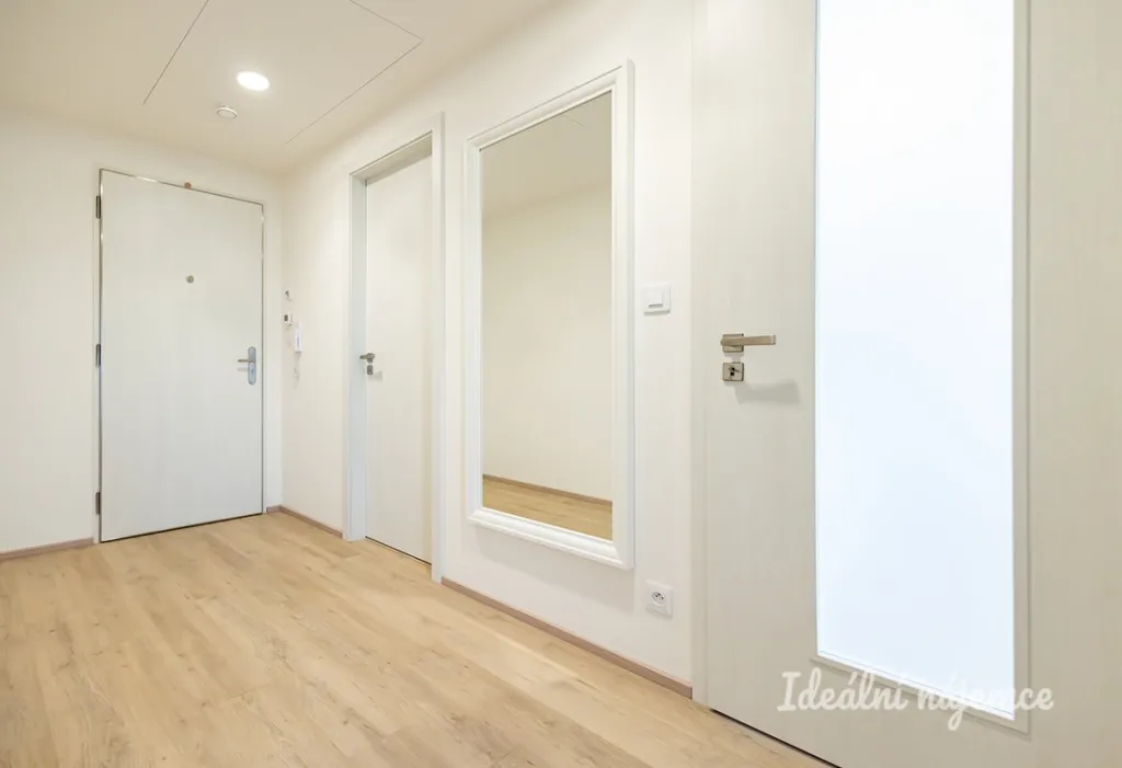 Byt je částečně vybavený – moderní kuchyňská linka je osazena kvalitními vestavěnými spotřebiči: myčka nádobí, lednice s mrazákem, indukční varná deska, elektrická trouba a digestoř. Otevřený obývací prostor plynule navazuje na kuchyň a poskytuje přímý vstup na lodžii orientovanou do klidného vnitrobloku.