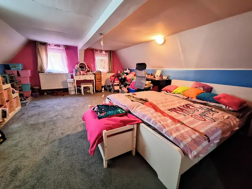 V prvním patře se nachází ložnice a dva průchozí pokoje.