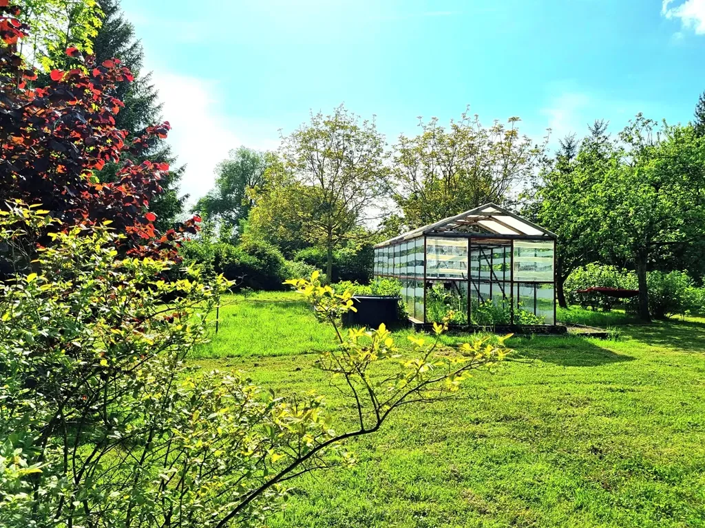 V zadní části domu je velký sklep, kotelna s automatickým kotlem zn. Ekoefekt 24 kW, který zajišťuje vytápění celého domu, dílna, garáž a vstup na velkou, rovinatou zahradu ( 2121 m2 ) s dvěma jezírky, jehličnatými , listnatými stromy a zastřešeným posezením - oáza klidu.