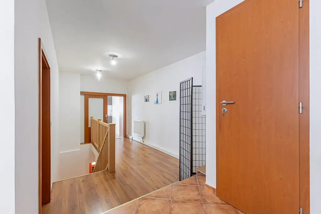 Další silnou stránkou domu je půdní prostor o velikosti cca 75 m² vzdušného prostoru, který přímo vybízí k vybudování další bytové jednotky.