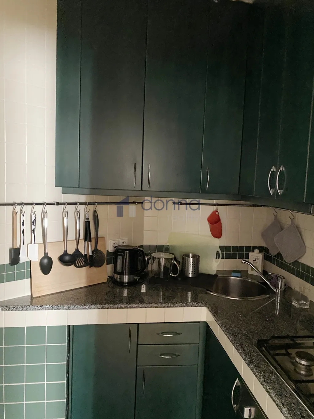 Byt je kompletně zařízený nábytkem a spotřebiči, v koupelně je vana.