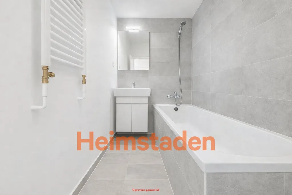 Koupelna je samostatná s vanou a projde kompletní proměnou – nové obklady, dlažba, umyvadlová skříňka, zrcadlo i osvětlení vytvoří příjemné a moderní prostředí.