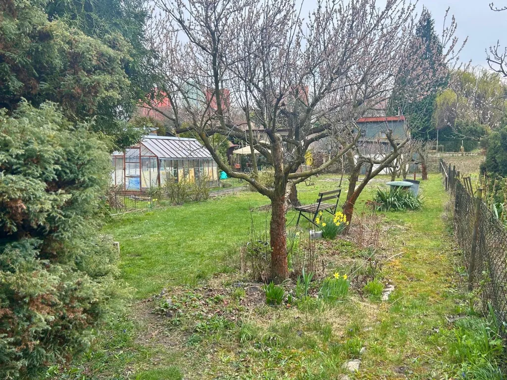 Zahrada je rovinatá, oplocená a připravená jak pro pěstování, tak pro odpočinek. Nachází se zde připravené záhony, plodící ovocné stromy a bobuloviny, místo k posezení a také nová dřevěná kůlna.