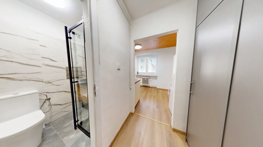Jednotka prošla částečnou rekonstrukcí. V celém bytě je položena plovoucí podlaha. Koupelna byla zrekonstruována velmi zdařile a nabízí sprchový kout, umyvadlovou skříňku s umyvadlem a toaletu. Přípojka na pračku je připravena v kuchyni.