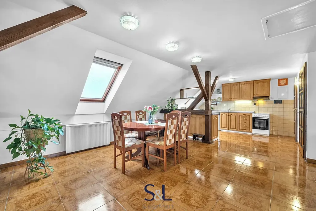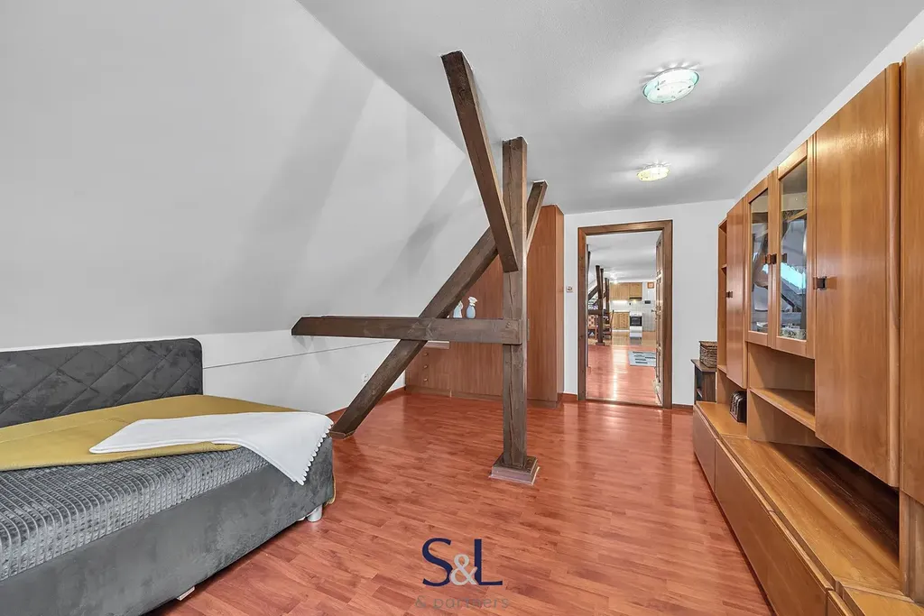 Dům poskytuje skutečně široké možnosti využití, což je jeho největší přidaná hodnota. V přízemí se nachází dispozice 2+1 o výměře 67 m², na kterou navazuje prostorná garáž s regály o velikosti dalších cca 67 m². Tento prostor může sloužit nejen k parkování a jako dílna, ale také jako sklad, provozovna, ateliér, menší obchod nebo zázemí pro podnikání přímo u vašeho domova. Objekt byl navíc původně kolaudován pro provoz prodejny auto-moto součástek, což jeho využitelnost ještě dále rozšiřuje. Díky samostatnému uspořádání lze přízemí využít i jako oddělený byt například pro rodiče, dospělé děti nebo k pronájmu. V podkroví se nachází velkoryse řešený byt o dispozici 3+kk s výměrou přibližně 134 m², který poskytuje dostatek prostoru pro komfortní rodinné bydlení. Dům tak umožňuje vícegenerační soužití bez ztráty soukromí, kombinaci vlastního bydlení s investičním pronájmem nebo propojení domova a podnikání pod jednou střechou.