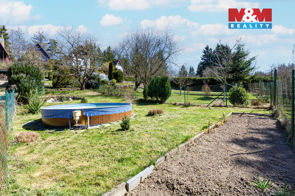 Na pozemku se nachází bazén, skalky, okrasná zahrádka i dvě boudy na materiál a samozřejmostí je také parkování přímo u nemovitosti. Lokalita je ideální pro milovníky přírody a procházek – okolí nabízí klid, zeleň a krásné trasy.