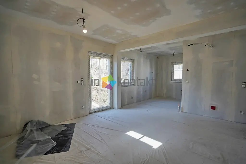 Aktuální stav a dokončení: Dům se prodává ve stavu rozestavěné stavby tak, jak je detailně zachyceno na fotografiích a v přiložených půdorysech. Budoucí majitel si tak sám podle svého vkusu a rozpočtu zajistí finální povrchy (výmalbu, podlahové krytiny), sanitu, interiérové dveře, kuchyňskou linku, venkovní úpravy soklu a finální zdroj vytápění.