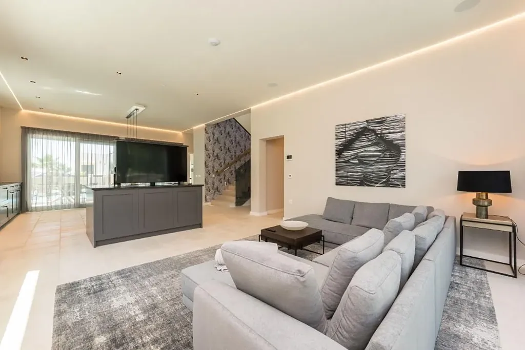 Vila se skládá z přízemí, 1. patra a střešní terasy. V přízemí je prádelna, WC, posilovna, kuchyň a jídelna a obývací pokoj, ze kterého je vstup na prostornou terasu s vyhřívaným bazénem a zahradou. V 1. patře jsou 3 ložnice s vlastními koupelnami a ve 2. patře je wellness s finskou saunou, koupelna a střešní terasa, kde je vířivka a letní kuchyně. Střešní terasa nabízí krásný výhled na moře, je zde příjemné posezení a 300 let starý dekorativní olivovník.