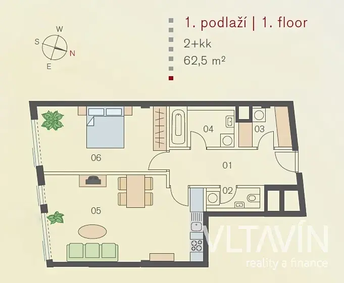 Nabízíme k pronájmu prostorný byt 2+kk o podlahové ploše 62,5m2 nacházející se v projektu Rezidence Sacre Coeur.