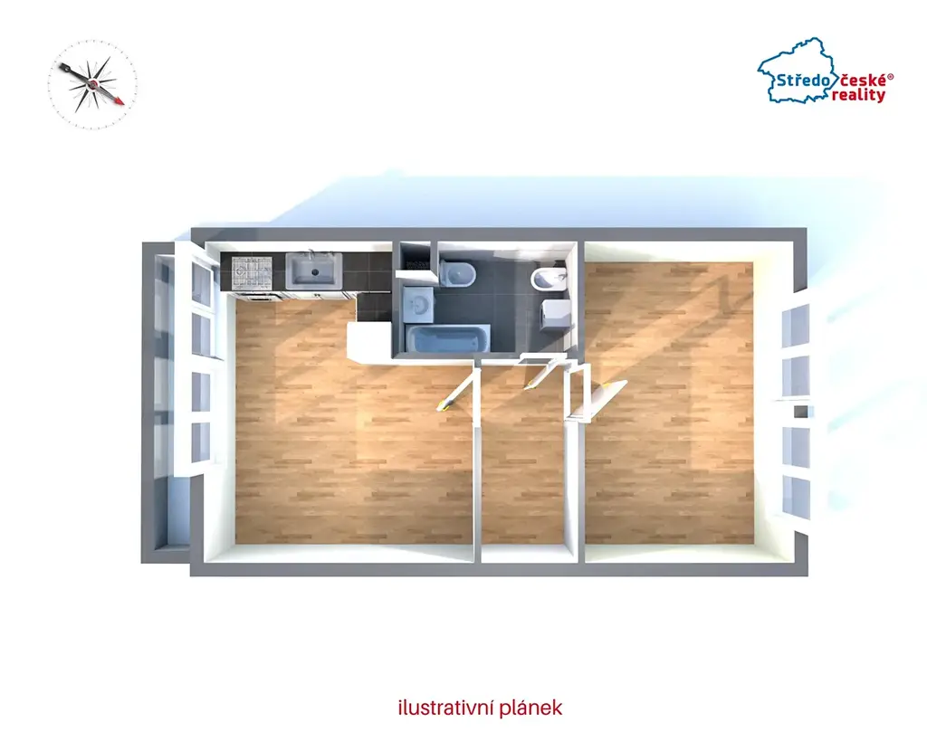 - obývací pokoj s kuchyňským koutem a vstupem na zasklenou lodžii