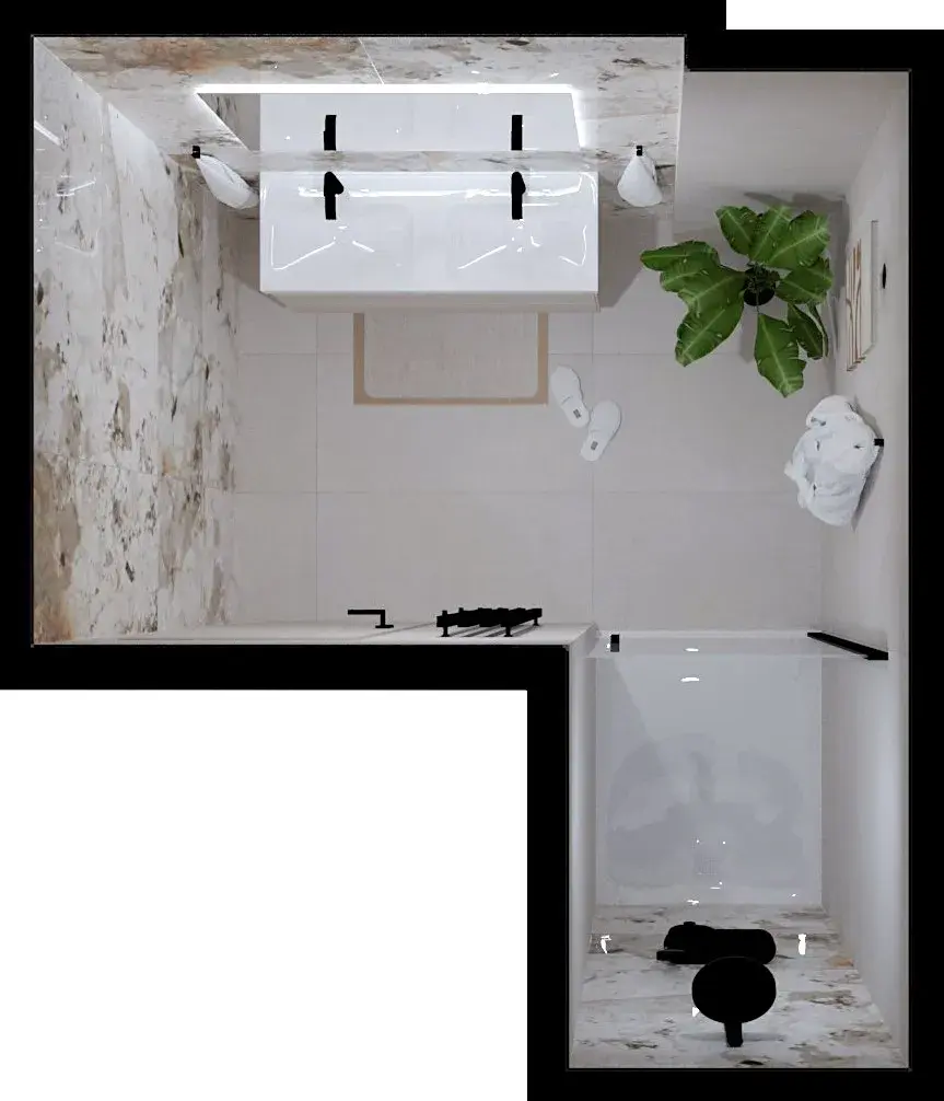 Návrh interiéru bytu je zpracován od firmy ARBYD a koupelny od společnosti ProCeram. Lze využít již hotové návrhy nebo navrhnout své vlastní interiérové řešení.