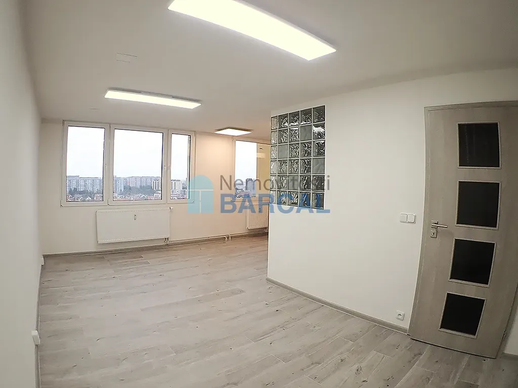 Nepřehlédněte nabídku kompletně zrekonstruovaného 1+kk blízko metra Kobylisy s dalekými výhledem na Prahu. Byt o velikosti 33 m2 ve 12. /posledním/ patře nabízíme částečně zařízený a to především zánovní kuchyňskou linkou s vestavěnými značkovými spotřebiči Concept (vestavěná lednička, mrazák, myčka, mikrovlnka, elektrický sporák, trouba se sklokeramickou varnou deskou) a pračka Candy. Nové el. rozvody (25 A), plastová okna, vinylové podlahy, důmyslný osvětlovací systém s úspornou regulací a možnosti změn nastavení barvy světla i pomocí DO. Mírně snížené stropy, koupelna s WC dohromady se sprchovým koutem. Sprchový kout je úplně nový a byt nyní vymalován. Dům je po revitalizaci včetně zateplení a je čistě udržován.