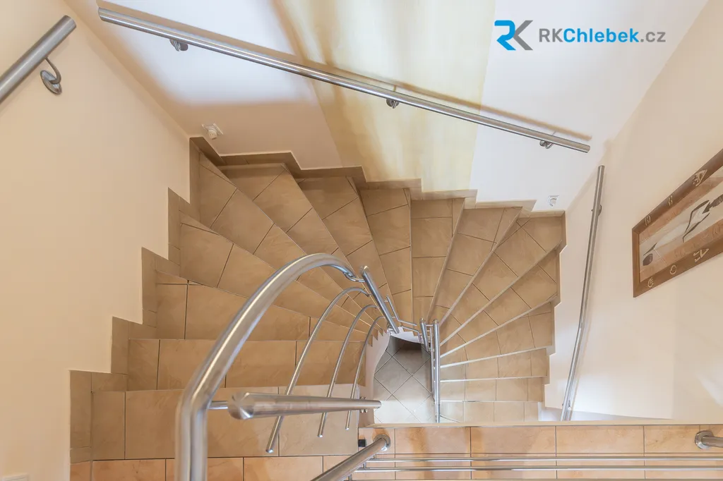 V přízemí vás okouzlí velký, světlý obývací prostor propojený s kuchyní a jídelnou, který tvoří přirozené srdce celého domu. Dominantou této části je krb, jenž dodává interiéru útulnost a v zimních měsících vytváří příjemné teplo domova. Samozřejmostí je také praktická technická místnost, samostatné WC a vstupní zádveří. Velkým benefitem je podlahové vytápění v celém spodním patře, které zajišťuje maximální komfort a rovnoměrné teplo.