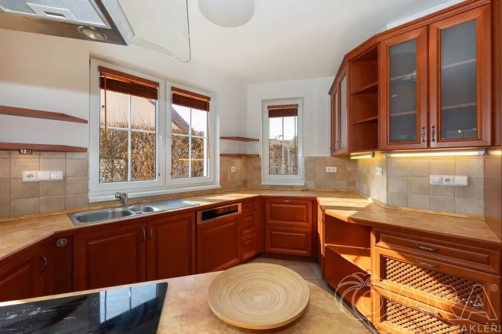 Nabízíme k prodeji krajový řadový rodinný dům v atraktivní a klidné části obce Dolní Břežany, okres Praha-západ. Dům disponuje obytnou plochou 146 m a zastavěnou plochou 89 m a nachází se na pozemku o celkové výměře 485 m. Součástí dispozice přízemí domu je prostorný obývací pokoj s krbovými kamny a kuchyňským koutem s na míru vyrobenou kuchyňskou linkou. V patře jsou pak 3 pokoje, kde u jednoho z nich je také na míru zhotovená praktická šatna. Součástí domu je prostorná garáž a prakticky řešený půdní prostor s dostatkem úložného místa. Vytápění zajišťuje plynový kotel a horní podlaží má klimatizaci. K nemovitosti náleží krásná vzrostlá zahrada se zahradním domkem, která poskytuje příjemné zázemí pro relaxaci i hobby aktivity.