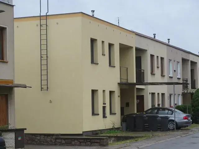 před 5 lety). Střecha budovy je plochá s živičnou krytinou. Na střeše jsou žlaby se svody. K domu patří částečně oplocená zahrada, na které se nachází bazén. Oplocení je plastové se zděnými sloupky a zděnou podezdívkou. Před domem