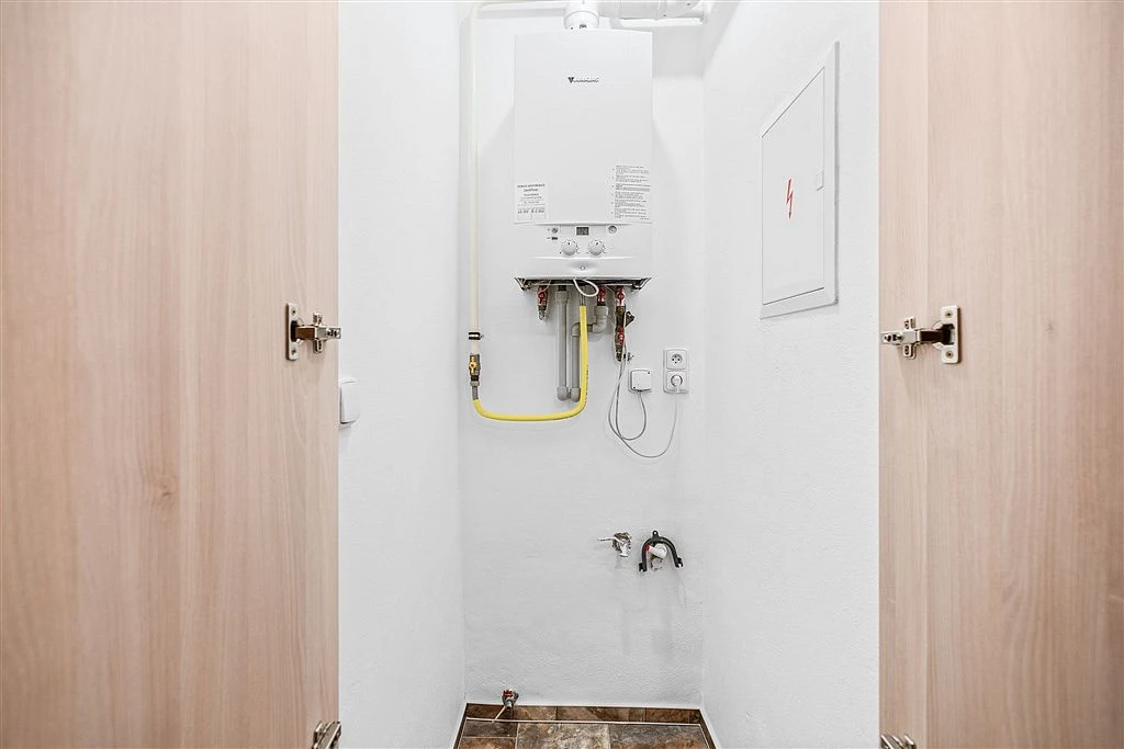 O komfort bydlení se stará plynový kombinovaný kotel zajišťující vytápění i ohřev vody. Všechna okna jsou vybavena venkovními roletami pro maximální soukromí a tepelný komfort.
