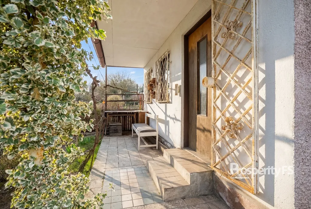 Pozemek je rozdělen na dvě části chodníkem mezi jednotlivými parcelami. První část je zastavěna chatkou a terasou, která je orientována na jižní stranu a je tak ideální na ranní kávu s výhledem do zbytku zahrádkářské kolonie. Druhá část pozemku je zastavěna skleníkem, který je uzamykatelný. Všechna ostatní půda je využívána k pěstování plodin.