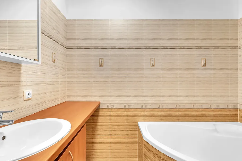 Interiér je laděn do příjemné vanilkovo-třešňové barevné kombinace, která ladí s obložkami dveří