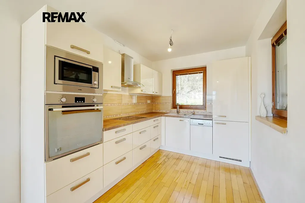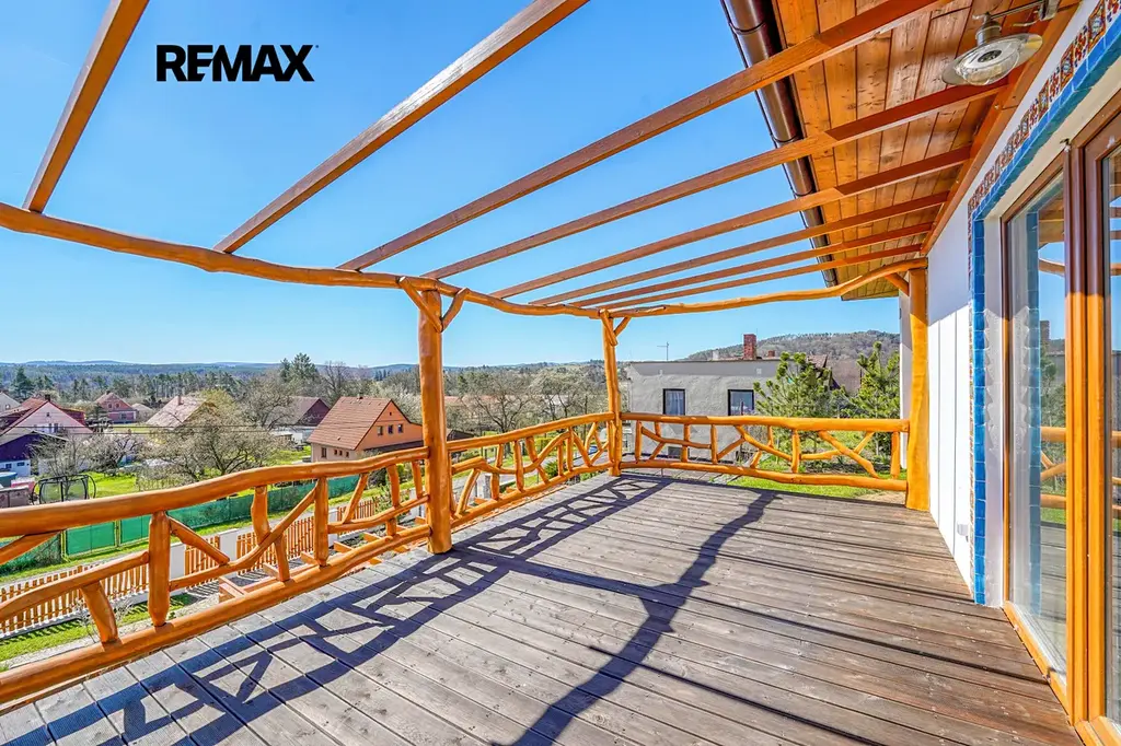Velkým benefitem je pečlivě zpracovaný exteriér, ploty a zábradlí jsou vyrobeny z odolného akátu, zámková dlažba je ze žuly, což zajišťuje dlouhou životnost a nadčasový vzhled.