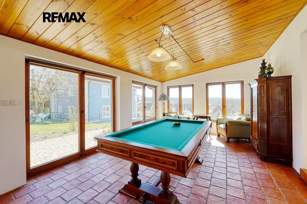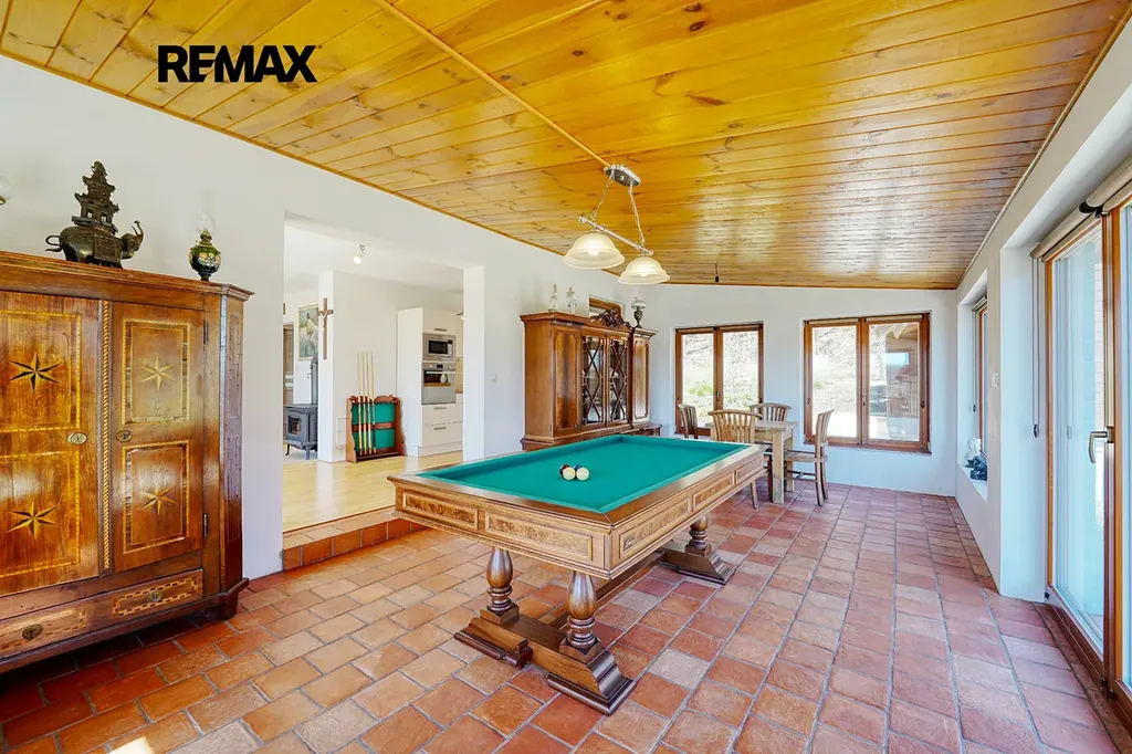 Nabízíme vám výjimečný rodinný dům v malebné obci Zvírotice, který zaujme nejen svou polohou, ale i důrazem na detail, kvalitními materiály a jedinečnými prvky včetně zimní zahrady, terasy nebo mariny vzdálené pouhých pár set metrů od domu, ideální pro milovníky vody, lodí a klidného odpočinku u hladiny. Nemovitost představuje ideální kombinaci klidného bydlení v přírodě a nadstandardního zázemí pro relaxaci i společenské využití.
