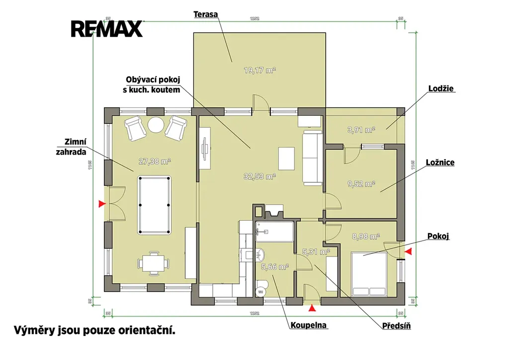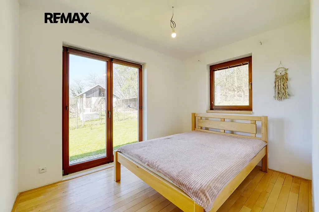 Dominantou domu je prostorný a světlý obývací prostor s kuchyňským koutem, který plynule navazuje na zimní zahradu. Ta nabízí celoroční využití a příjemné propojení interiéru s okolní přírodou. Díky velkým oknům je celý prostor krásně prosvětlený a zároveň energeticky úsporný.