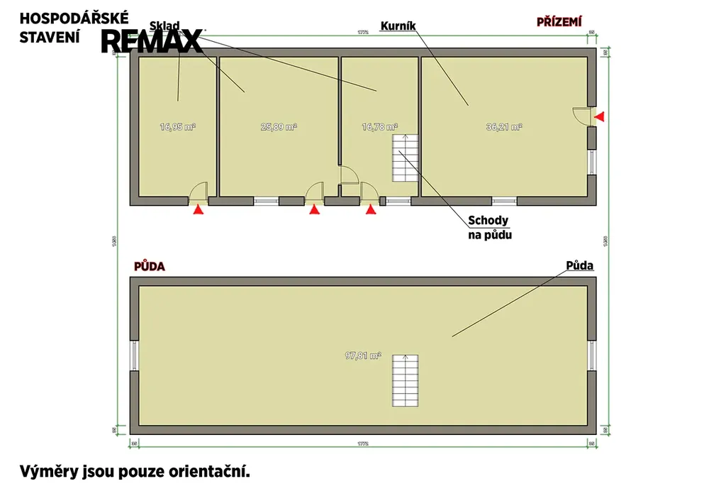 Dům je řešen jako patrový se třemi nadzemními podlažími. Dispozičně je rozdělen do dvou bytů s dispozicí 6+1 a 2+kk, což zajišťuje dostatek prostoru a soukromí i pro vícečlennou rodinu nebo vícegenerační bydlení. Součástí domu je také garáž, sklep o 50 m2, hospodářské stavení, sklad a půda s možností přestavby na obytný prostor.
