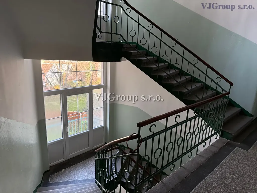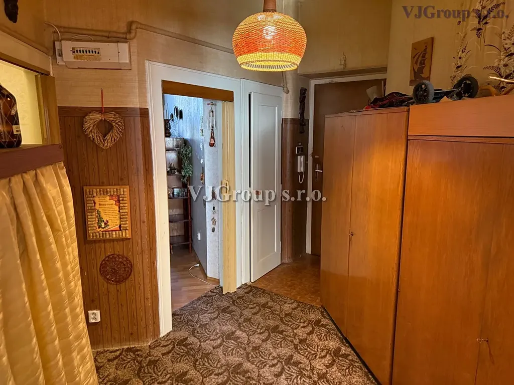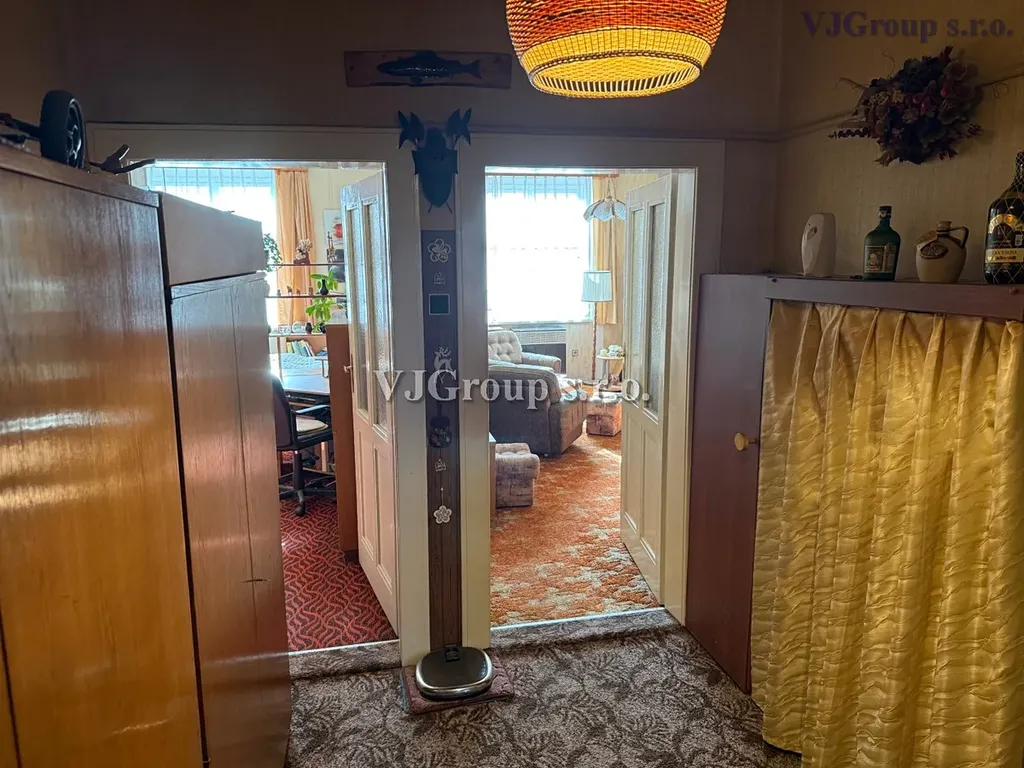 Byt v osobním vlastnictví je situován ve 4. patře pětipatrového domu s výtahem. Dispozičně je byt řešen jako 2+1 + předsíň, obytná plocha bytu činí 69 m² + sklepní kóje, jejíž výměra není zahrnuta v celkové výměře bytu. Byt sestává z větší předsíně, obývacího pokoje, prostorné ložnice, samostatné kuchyně s jídelnou a samostatnou spíží, koupelny s vanou a umyvadlem a samostatné toalety v předsíni. V koupelně i na WC jsou provedena okna do světlíku. Oba pokoje mají samostatné vchody z předsíně a zároveň jsou vzájemně propojeny aktuálně nepoužívanými spojovacími dveřmi. Vstupní dveře do bytu jsou bezpečnostní.