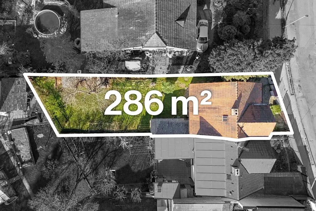 Celková plocha pozemku činí 286 m², z čehož zahrada tvoří 179 m².