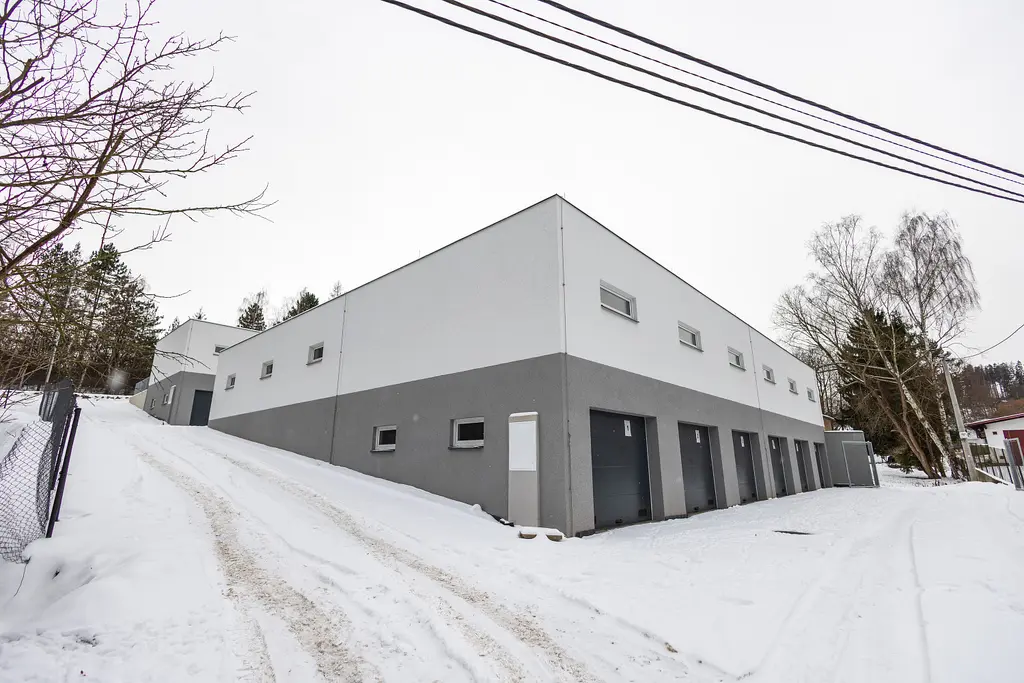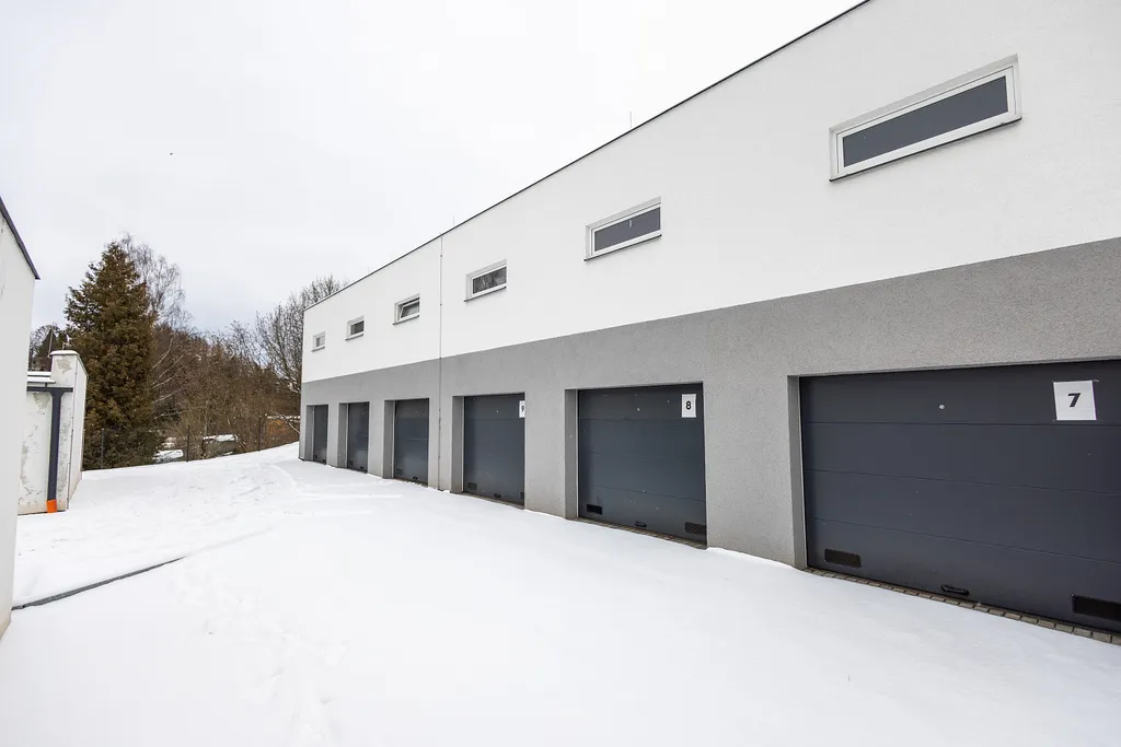 V obou budovách je celkem 30 garážových/skladových stání, některé z nich jsou ale propojené, aby vznikly větší prostory a celkově větší variabilita využití.