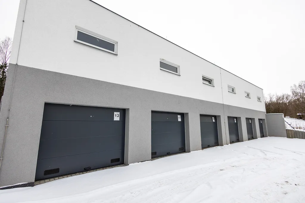 Najdete tu celkem 22 vchodů, což znamená, že některé garáže jsou trojité – tedy s plochou třikrát větší a bez vnitřních příček. Samozřejmě je možné je znovu rozdělit, ale až to uvidíte naživo, sami zjistíte, jak praktické a užitečné to řešení je.