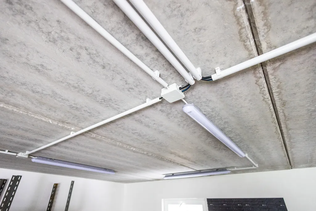 Zděné garáže se stropy z betonových panelů, kompletní rozvody elektřiny, kanalizace na pozemku pro svedení dešťové vody. Každá budova má vlastní rozvodovou skříň, v jednotlivých garážích jsou jističe, zásuvky a automatická vrata.