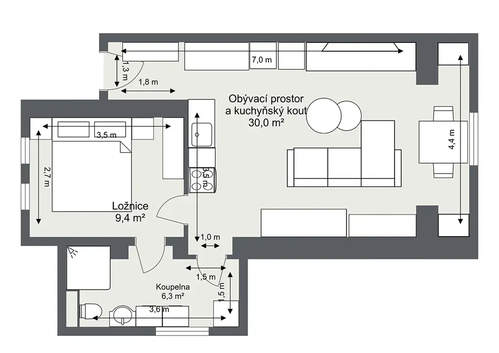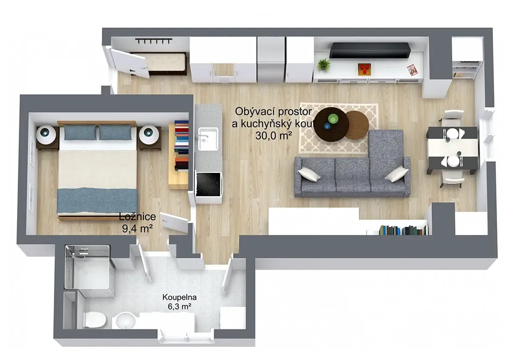 Dispozice 2+kk je ideální pro jednotlivce nebo pár, kteří hledají dlouhodobé, pohodlné a klidné bydlení. Pejsci i kočičky jsou zde bez problémů vítáni.
