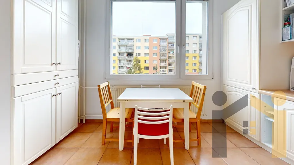 Ve velmi příjemné lokalitě s perfektní občanskou vybaveností v okolí nabízíme dlouhodobý pronájem příjemného a světlého bytu 3+1 s lodžií v 5.NP (4. patro), se sklepem. Byt se nachází v zatepleném panelovém bytovém domě v ulici Rabyňská, Praha 12, Kamýk.