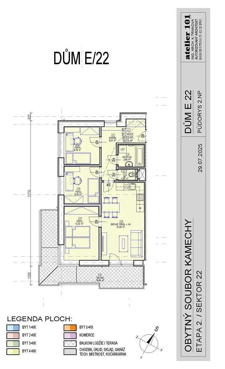 Představujeme Vám tento prostorný byt 4+kk v osobním vlastnictví, který je nyní ve fázi výstavby a bude připraven k nastěhování na konci roku 2027. Nachází se v cihlové stavbě ve druhém patře, která je součástí nového moderního projektu v Brně. Byt nabízí užitnou plochu 69,53 m², s důrazem na efektivní využití prostoru.
