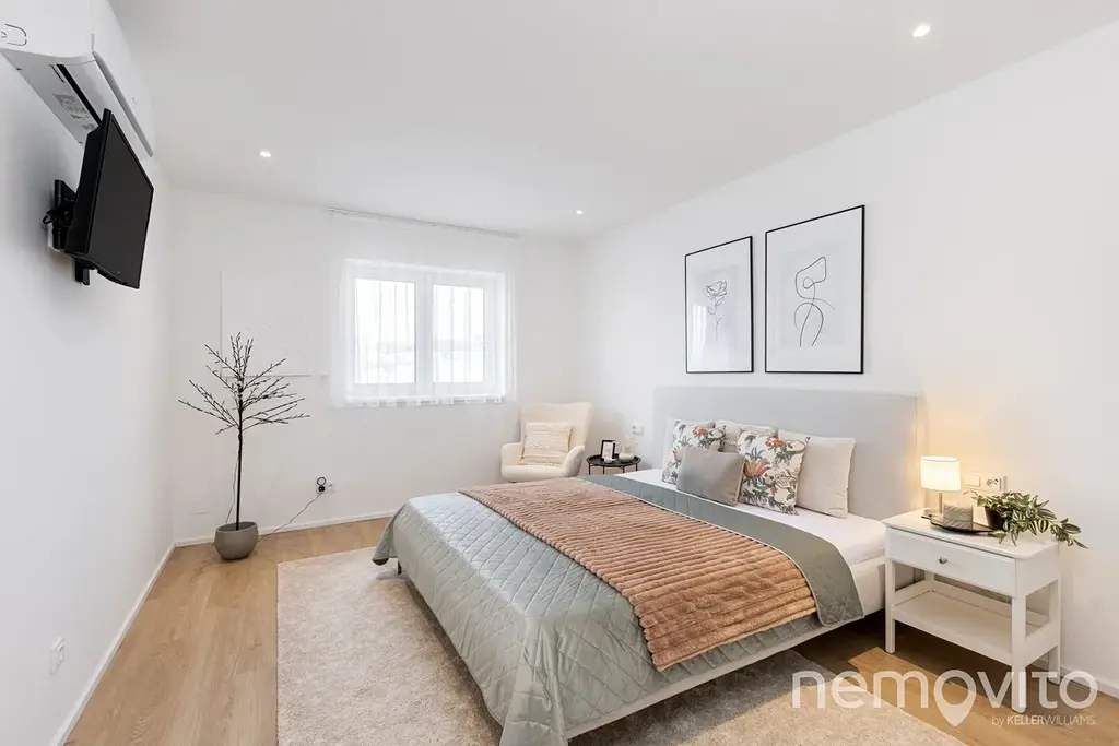 Opravdu velký bungalov o dispozici 5+kk a ploše 186 m2, ke kterému náleží ještě samostatná 25 m2 garáž a bazén. Dům je vybaven FVE s tepelným čerpadlem a jeho roční spotřeba je do 4 MWh elektřiny. Mimo provozních nákladů však vyniká zejména nezvykle velkou plochou, která je pro bungalovy atypická, ale slouží perfektně. Dům byl dokončen v roce 2023 a je tedy stále jako nový.