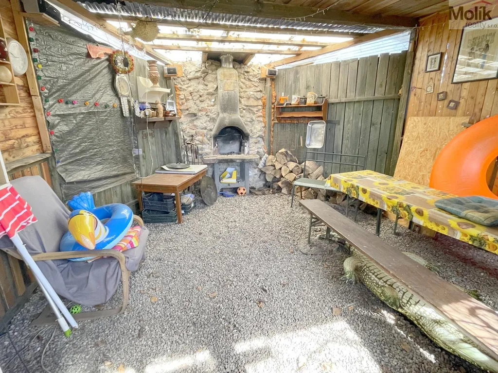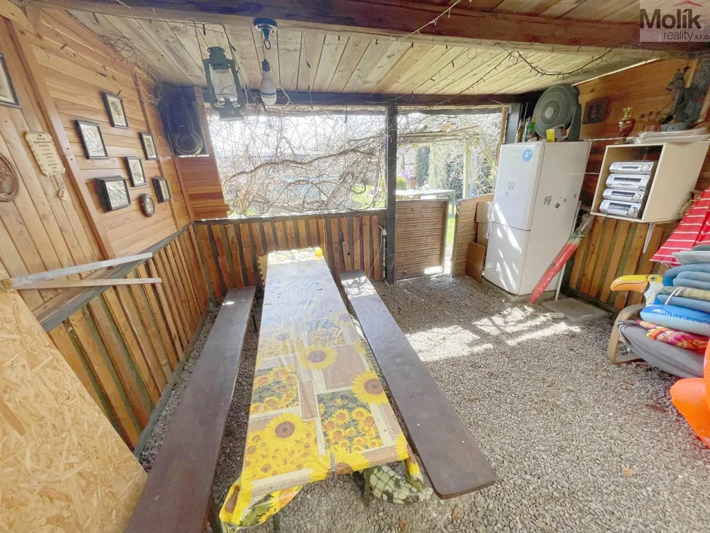 Součástí této zahrady je zahradní domek, altán s posezením, velký bazén skleník, venkovní posezení, jezírko atd. Zahrada je napojena elektřinu aužitkovou vodu. Tato zahrada je ideální pro ty, kteří touží po klidu a přírodě, ale zároveň chtějí mít všechny výhody města na dosah ruky.
