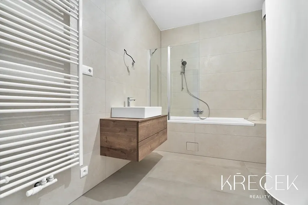 K dispozici bude kuchyňská linka na míru od truhláře, koupelna a samostatná toaleta, ostatní si nový nájemce může přizpůsobit dle vlastních představ. Byt se nachází v novostavbě, která zajišťuje nízké provozní náklady. V domě je k dispozici výtah a k bytu náleží vlastní kryté parkovací stání za domem. Připravený k nastěhování bude od 1. 5. 2026.