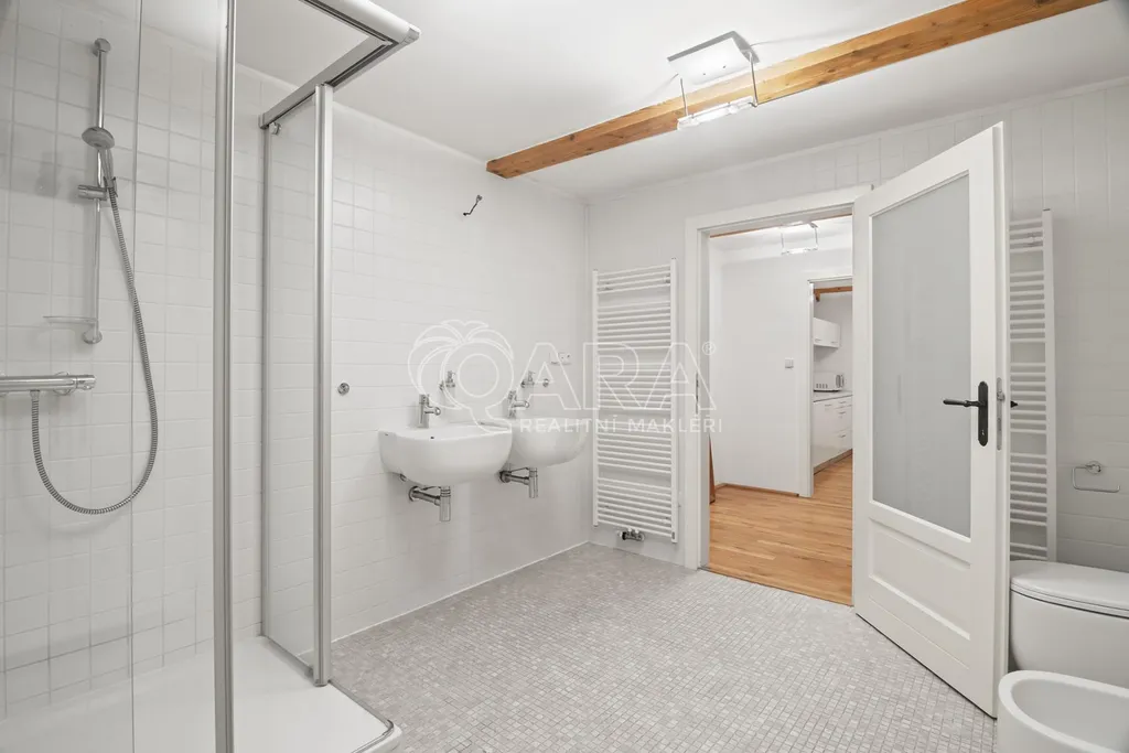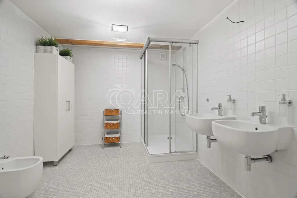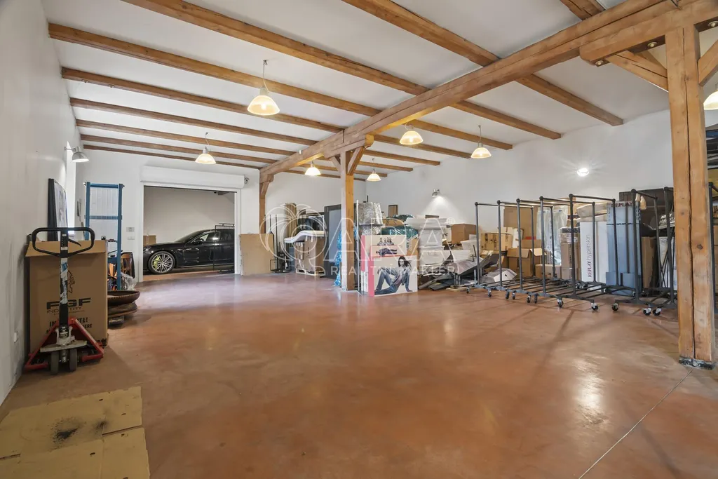 Celková podlahová plocha činí 469,5 m2 ve dvou podlažích. Přízemí o velikosti 221 m2 je řešeno jako skladový prostor s možností přímého vjezdu, zatímco horní podlaží o výměře 248,5 m2 tvoří otevřený a reprezentativní prostor vhodný pro showroom, kanceláře nebo ateliér. Díky konstrukčnímu řešení krovu bez podpěrných sloupů je prostor maximálně variabilní a vzdušný.